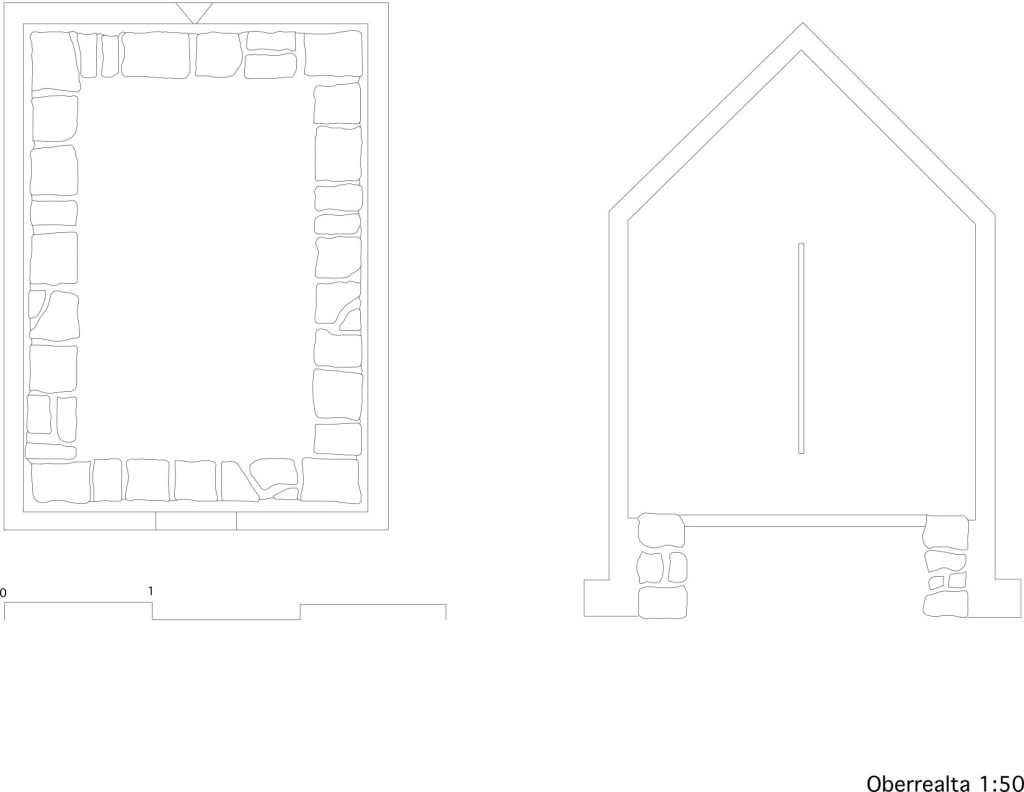 Christian Kerez, plan and elevation at 1:50, Oberrealta Chapel, Grisons, Switzerland, 1992, Divisare.