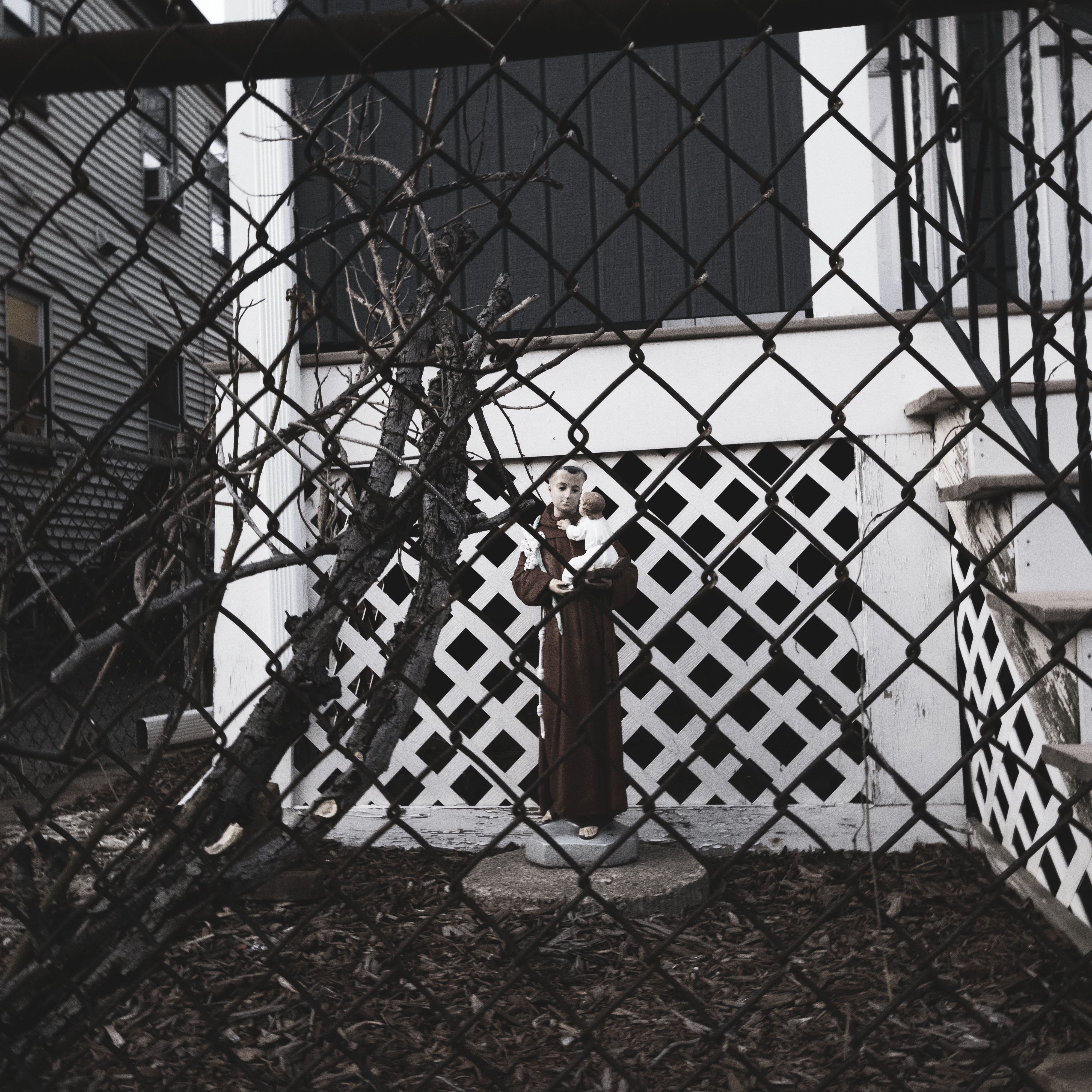 As Harvey Molotch explains in his summary of Lefebvre’s The Production of Space, “… groups, classes, or fractions of classes ‘can not constitute themselves, or recognize one another, as ‘subjects’ unless they generate a space.’”7 This second mythologization of the patria is an attempt to regenerate the paradisiacal space in the adopted land, and thus to reestablish the immigrant’s being. Mircea Eliade explains, “Man desires to recover the active presence of the gods; he also desires to live in the world as it came from the Creator’s hands, fresh, pure, and strong. It is the nostalgia for the perfection of beginnings that chiefly explains the periodical return in illo tempore.”8 In the case of the immigrant, the lares is severed from the earth on which they dwell now and there is longing for reunion of place and self. Because the immigrant is de-rooted from their physical space on earth, they are disconnected from their lares, and whereas before they nourished themselves both spiritually and physically from the same land as their ancestors, they must now spiritually nourish themselves on a mythical space disconnected from the physical nourishment found in the adopted land. This mythical space is a reconstruction of the lares achieved via the recounting of stories and descriptions of land, plants, and animals, in perusing photos like sacramentals, in reestablishing its physical parameters in language and image. Karsten Harries speaks of this severance as displacement, saying, “Displacement here means not so much a loss of adequate shelter, but a tearing of a social fabric, a fabric that cannot be divorced from a certain land, a certain history, a certain language, religion and custom.”9 This is why, in walking through Somerville, MA I encounter “bathtub Marys and Jesuses,” those 4-foot statues, sometimes illuminated in neon blue light, that dot the narrow front yards of the city’s three-story tenements. They are attempts to replicate the quintal10 and street shrines, to manifest the patria, to replant the lares in a foreign land. Thus, in, “the reactualization of his myths,” — in this image implantation — “religious man attempts to approach the gods and to participate in being; the imitation of paradigmatic divine models expresses at once his desire for sanctity and his ontological nostalgia.”11 Chinatown gates do the same. Little Italies’ winding streets. Pastel stucco in winter climes.